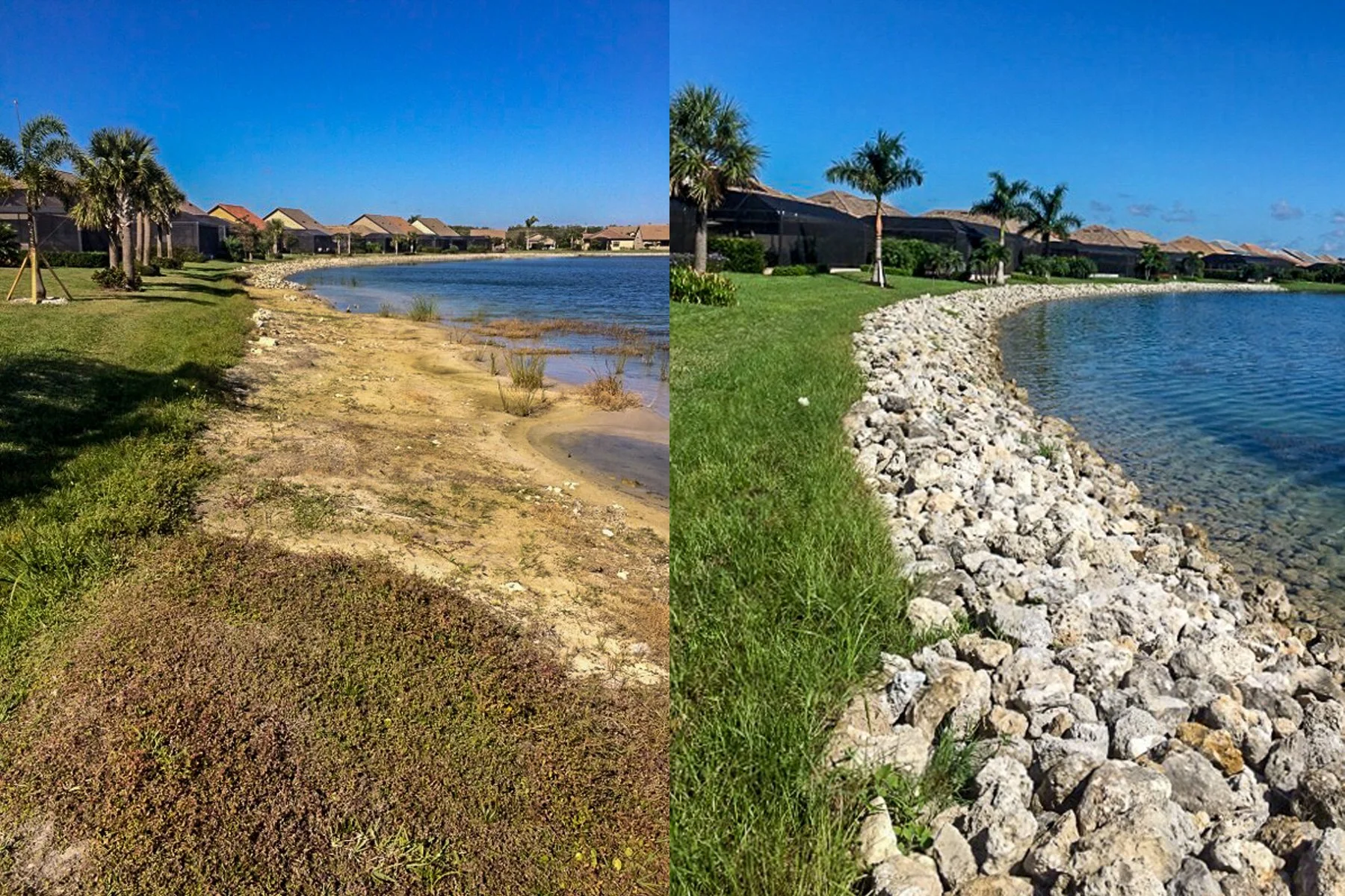 In Orlando and Central Florida, ponds and lakes serve as essential features that enhance property value, manage stormwater, and elevate community appeal for commercial properties, HOA communities, and private lakefront homes. Unfortunately, Florida’s climate, heavy rainfall, and sandy soils can cause these shorelines to erode over time, creating safety hazards, drainage problems, access issues, and aesthetic concerns that decrease property value.