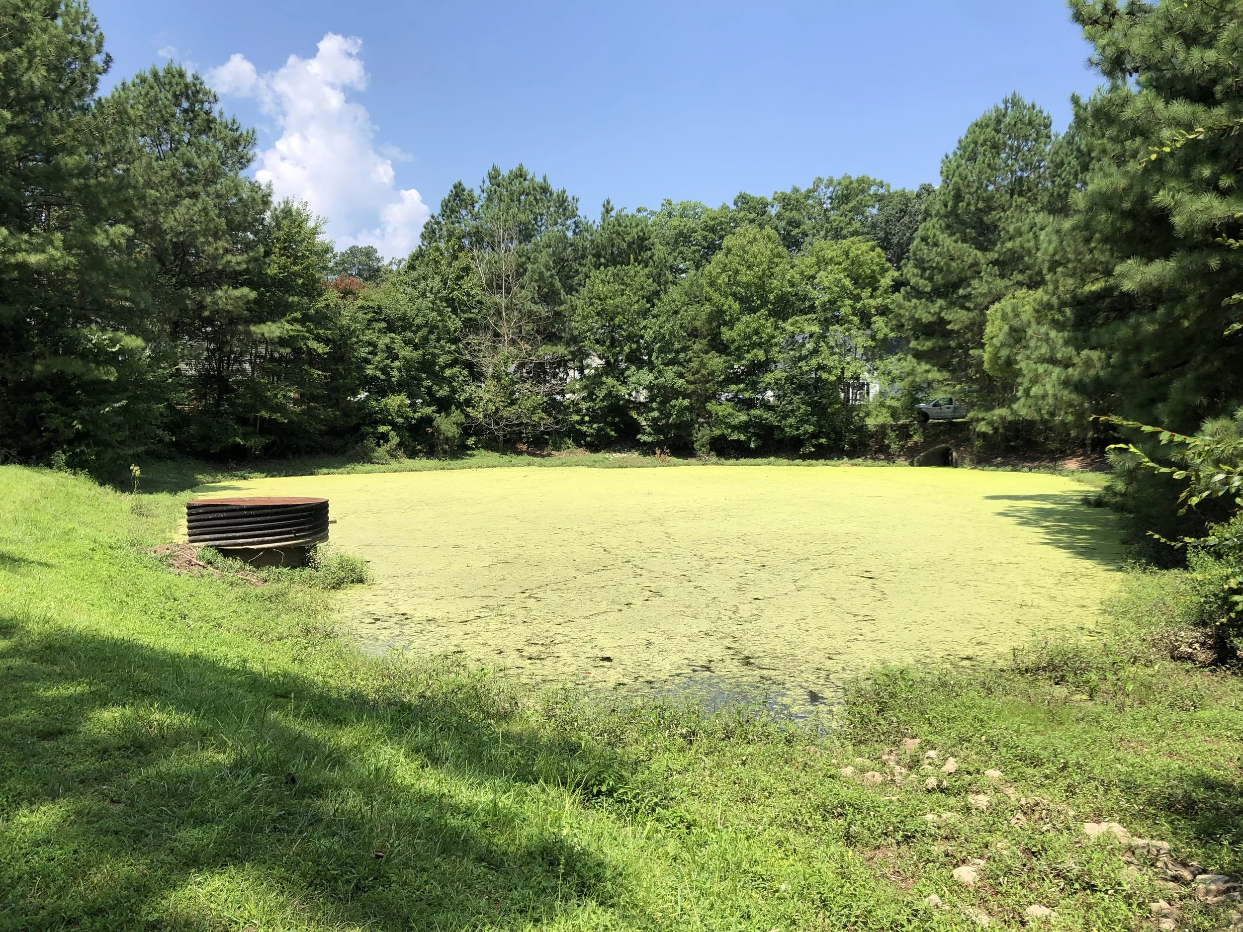 Algae, aquatic weeds, grass, cattails, brush, and small trees can take over a stormwater pond quickly, especially in the Piedmont region where warm seasons promote rapid growth.
